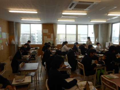 国語の授業では、送り仮名について、動詞や形容動詞の活用の仕方をもとに確認をしました。
