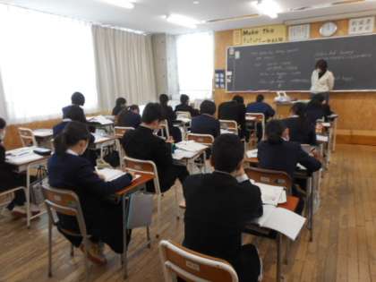 英語では、リスニング問題に取り組みました。英語で行われている会話を聞き、設問に答える練習をしました。
