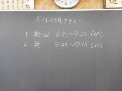本日の授業(2年生) 公開日 2022/01/13 更新日 2022/01/13 芝園の一日 1月13日(木) 2年生の確認テストの様子です。 2年生の確認テストは、2学期から開始した家庭でのテキスト学習の内容から出題しました。 これまでの学習の成果を確認する機会となりました。