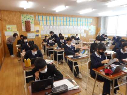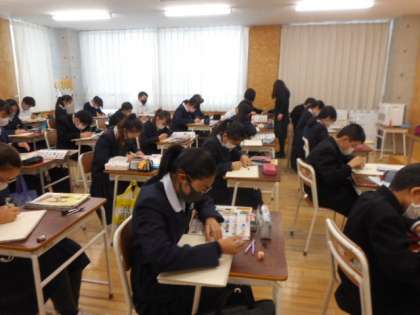 英語では、これまで学習した事柄を用いた英作文を書きました。