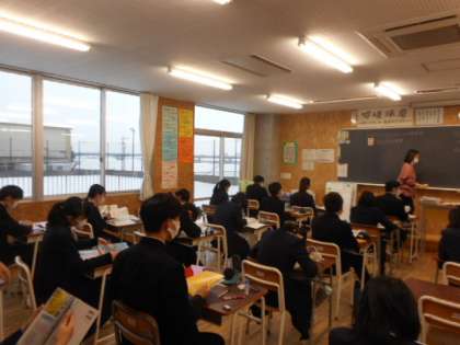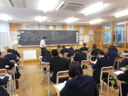 本日の授業(3年生:その2) 公開日 2022/01/17 更新日 2022/01/17 芝園の一日 1月17日(月) 3年生の授業の様子です。 社会では、公民の分野で、金融の仕組みについて確認しました。 数学では、三平方の定理の応用問題に取り組みました。