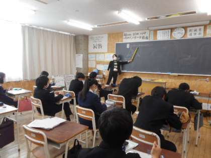 本日の授業(2年生:その1) 公開日 2022/01/25 更新日 2022/01/25 芝園の一日 1月25日(火) 2年生の授業の様子です。 数学では、三角形の合同条件を確認しました。 社会では、歴史の分野で、明治時代の政治について学習しました。
