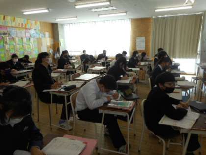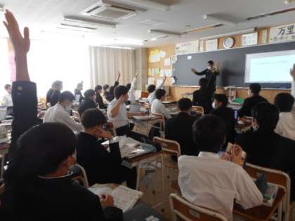 保健では、ハチに刺された時の対処の仕方について考えました。活発に挙手する様子が見られました。
