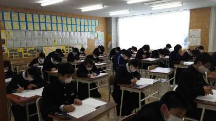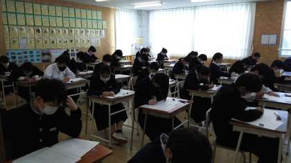 2月3日(木) 1年生の実力テスト2日目の様子です。 「理科」「数学」「英語」に取り組みました。