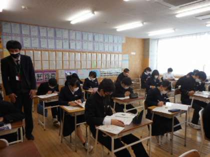 英語では、教科書にあるスティーブ・ジョブス氏に関する英文を読み、自分の意見を書きました。