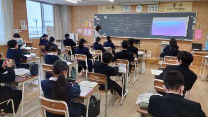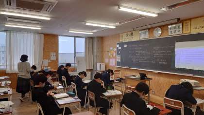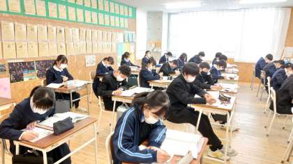 2月16日(水) 1年生の英語の様子です。 一年間を振り返り、英作文を書きました。