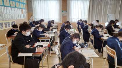 2月17日(木) 1年生の社会の様子です。 「産業と交通の発達」について学習しました。