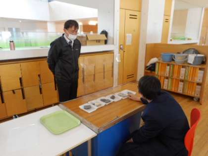 理科では、いろいろな石を実際に触って、その特徴から石の名前を確認しました。
