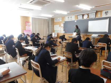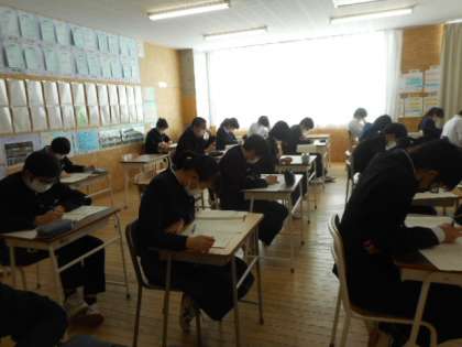 3年生は県立高校の入試本番に向けて、演習問題に取り組んでいます。
