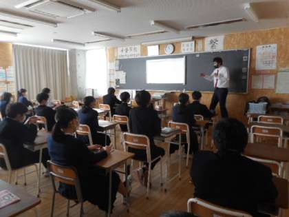 英語では、担当教諭の外国での生活体験をもとに英語表現を学習しました。
