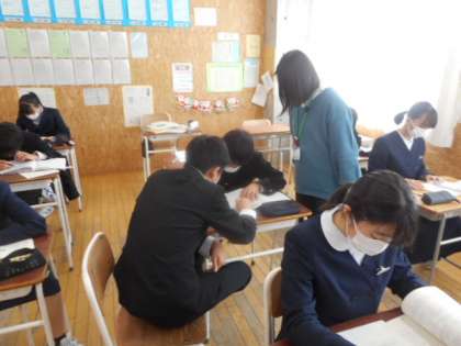 社会では、入試に向けた演習問題に取り組みました。分からない問題は、質問をして理解を深めています。