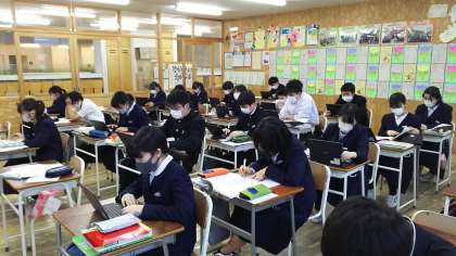 本日の授業(2年生:その3) 公開日 2022/03/03 更新日 2022/03/03 芝園の一日 3月3日(木) 2年生の社会の様子です。 「北海道地方」についてchromebookを使って調べています。
