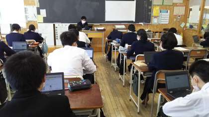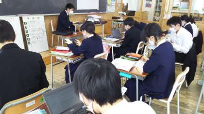 本日の授業(2年生:その2) 公開日 2022/03/04 更新日 2022/03/04 芝園の一日 3月4日(金) 2年生の社会の様子です。 北海道地方についてchromebookを使って調べました。