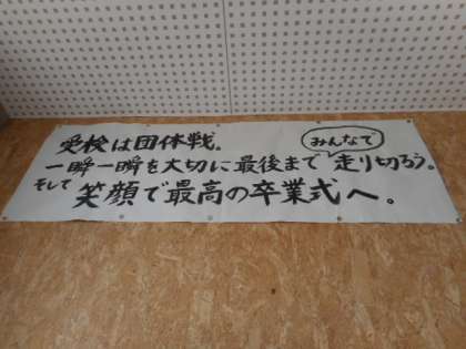 3年生に向けて 公開日 2022/03/08 更新日 2022/03/08 芝園の一日 3月8日(火) 県立高校の一般入試が始まりました。 3年生の教室には、「受検は団体戦 一瞬一瞬を大切に最後まで みんなで乗り切ろう。そして笑顔で最高の卒業式へ。」という言葉が掲げられています。 受検生のみなさん、残り1日です。心と体を休めて明日を迎えてください。