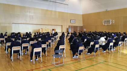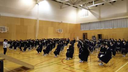 集会では、卒業式に向けて、志貴の流れや動きの確認を行いました。