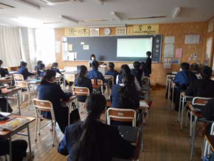 本日の授業(1年生:その2) 公開日 2022/03/10 更新日 2022/03/10 芝園の一日 3月10日(木) 1年生の授業の様子です。 家庭科では、自宅で行った調理実習をもとにして、食生活の改善についてクロームブックを活用して発表しました。
