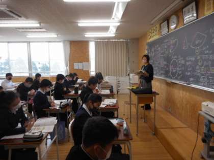 数学では、球の体積や表面積の求め方について学習しました。公式を確認して演習問題に取り組みました。