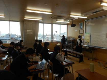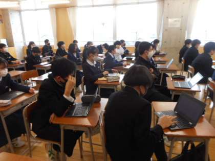 本日の授業(2年生:その4) 公開日 2022/03/10 更新日 2022/03/10 芝園の一日 3月10日(木) 2年生の授業の様子です。 音楽では、アプリケーションを活用して作曲した曲について、曲想や工夫したことを発表しました。