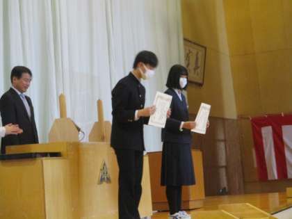 中体連表彰 公開日 2022/03/14 更新日 2022/03/14 芝園の一日 3月14日(月) 富山県中体連表彰の様子です。 富山県中学校体育連盟より、中学校在学中によく運動神経を身につけ、体育・スポーツの振興に貢献した生徒が、表彰されました。