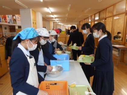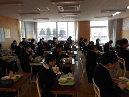 義務教育最後の給食を3年生は、楽しくいただきました。