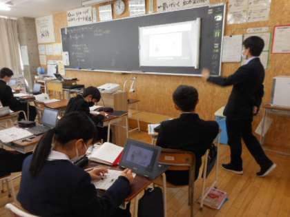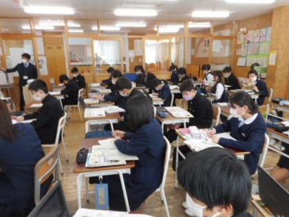 本日の授業(2年生:その2) 公開日 2022/03/16 更新日 2022/03/16 芝園の一日 3月16日(水) 2年生の授業の様子です。 社会では、明治時代の中国と日本の関係について、風刺画をもとに考え、意見を交換しました。
