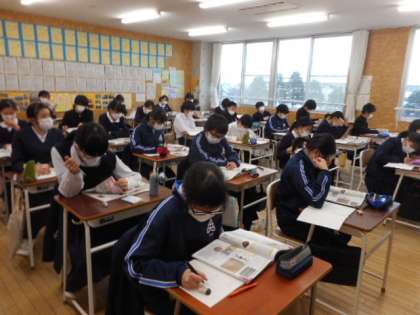 3月18日(金) 1年生の授業の様子です。 社会では、豊臣秀吉が行った政策について学習しました。