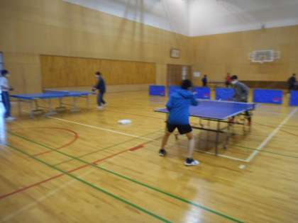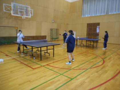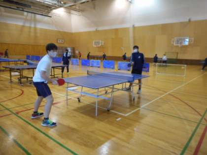 卓球部は、試合形式の練習に取り組んでいました。顧問やコーチの助言を聞き、技能の向上に生かそうと考えながらプレーしていました。