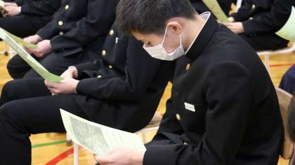 1、2年生の代表生徒が修了証を受け取りました。