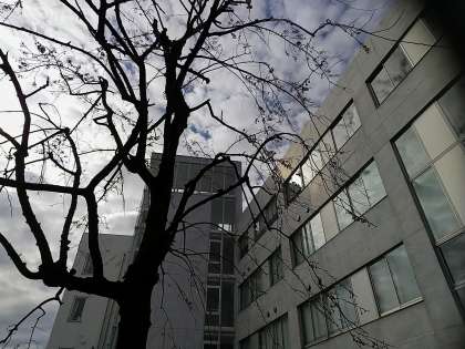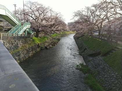 校区を流れる松川の桜です。歩道橋の撤去が決まり、長年親しんできた「歩道橋と桜」の情景は、今年で見納めです。敷地内の「しだれ桜」は、昨年の今頃はすでに満開でした。今年は、入学式に見頃を迎えそうです。楽しみですね。