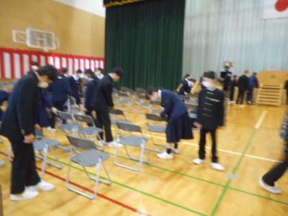 入学式準備(2年生) 公開日 2022/04/07 更新日 2022/04/07 芝園の一日 4月7日(木) 入学式の準備の様子です。2年生は、新入生や保護者の椅子を並べました。2年生になり、明日新しく後輩が入ってくることを心待ちにしてる様子で、張り切って活動に取り組んでいました。昨年度より、たくましく成長した姿が見られました。