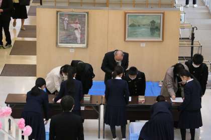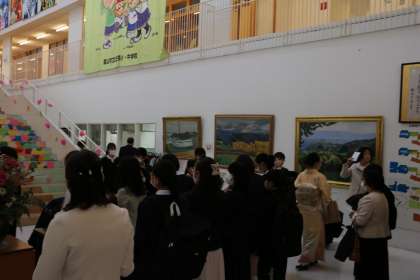 4月8日(金) 新入生が先輩たちの案内で教室に向かっている様子です。 先輩たちの挨拶に明るく応えていました。