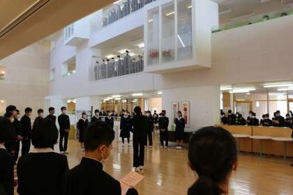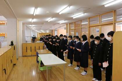 入学式(その6) 公開日 2022/04/08 更新日 2022/04/08 芝園の一日 4月8日(金) 入学式の後、先輩たちが校歌を披露してくれました。 歌詞を見ながら真剣に聴いていました。 伝統ある芝園中学校の校歌が、先輩から後輩に受け継がれていきます。本当に、素敵な光景です。