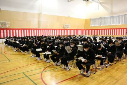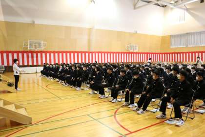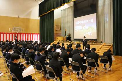 学年集会(1年生) 公開日 2022/04/11 更新日 2022/04/11 芝園の一日 4月11日(月) 初めての学年集会では、芝園中学校の1日の過ごし方について確認しました。生徒達は、真剣に聴いていました。 中学校生活がいよいよ始まりますね!