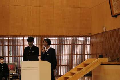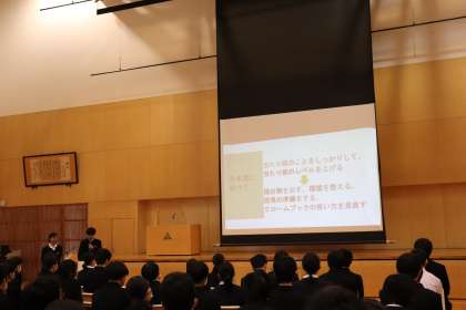 先週の学年集会の様子です。学年の代表から2年生での取組を振り返り、最上級生としてどのようにしていくか話をしていました。今日は新GSSが発足し、早速学年目標や月目標を決めました。