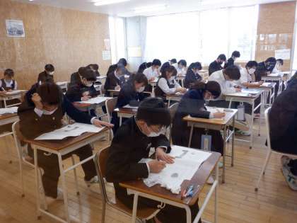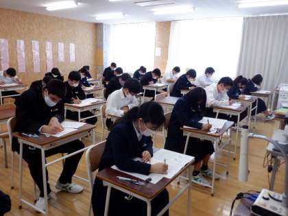 中教研学力調査2日目 その3 3年生 公開日 2022/04/12 更新日 2022/04/12 芝園の一日 4月12日(火) 1限 3年生の学力調査の様子です。 教室は、生徒の真剣な雰囲気に包まれています。
