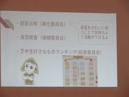 生徒会執行部、各委員長からの活動内容の説明がありました。