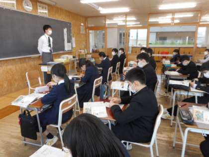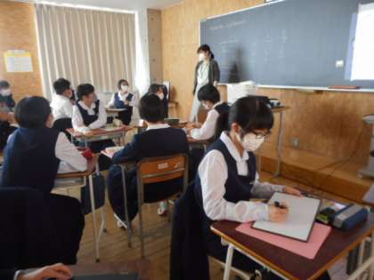 2年生の授業の様子です。数学、社会、英語では、授業開きを行いました。1年間の授業のねらいや身に付けたい力、年間の計画などを確認しました。