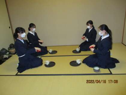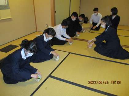 仮入部に参加してくれた1年生には、実際にお茶を点てる体験をしてもらいました。上級生は、張り切って準備をしていました。仮入部終了後は、自分自身の稽古をした上、新入部員にどのように教えるかを相談しました。