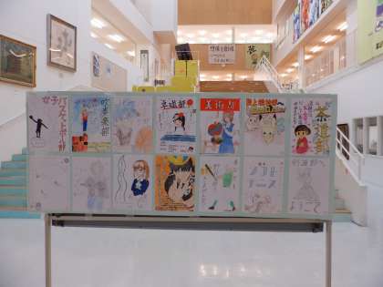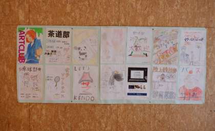 廊下には、それぞれの部が制作した勧誘ポスターが掲示してあります。