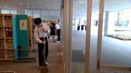 さて、朝玄関を見ると掃除をしてくれてる3年生の姿。