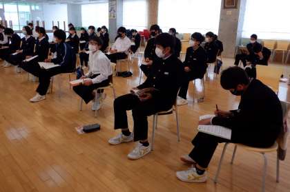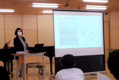 翼をください 2−A音楽 公開日 2022/04/19 更新日 2022/04/19 芝園の一日 4月19日(火) 1限 2−Aの音楽の授業風景です。 「翼をください」の楽曲について学習をしています。 この曲が「変ロ長調」であるこの説明を、熱心に聞いています。