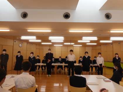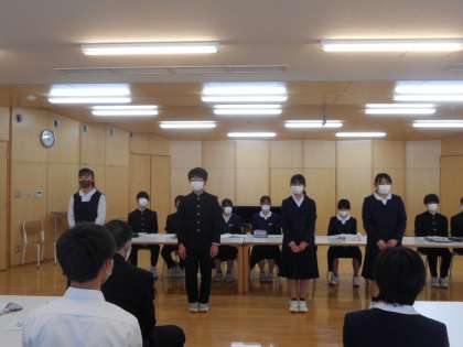 体育大会に向けて、皆思いを込めて挨拶しました。挨拶や返事に活気があり、意識はスタートしています。皆が全力で臨み、心に残る体育大会にしましょう。