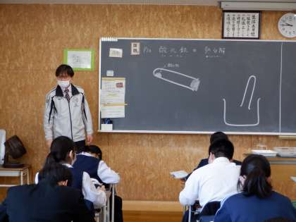酸化銀の還元 2−D理科 公開日 2022/04/22 更新日 2022/04/22 芝園の一日 4月22日(金) 2限 2−Dの理科の授業風景です。 「酸化銀の還元」について学習をしています。実験の方法を分かりやすく、図で解説をしています。
