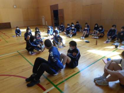 2年生の体育では、スポーツテストを実施しました。上体起こしなど柔軟性を測定しました。