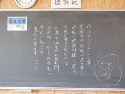 今週も頑張りましょう! 公開日 2022/04/25 更新日 2022/04/25 芝園の一日 4月25日(月) 8:00 おはようございます。 4月最後の週がスターとしました。 朝教室をのぞいてみると担任からの温かいメッセージが・・・ 担任からの応援を受けて、今週も学習に部活動に、そしていろいろな活動に全力投球!頑張りましょう!