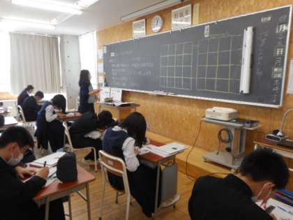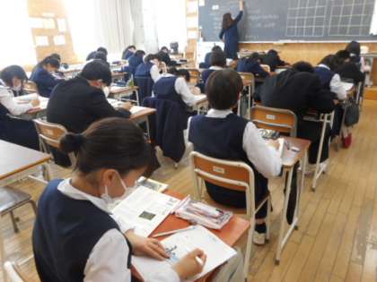 2−Cの美術の授業風景です。明朝体やゴシック体の特徴を捉えて、実際にレタリングをしました。