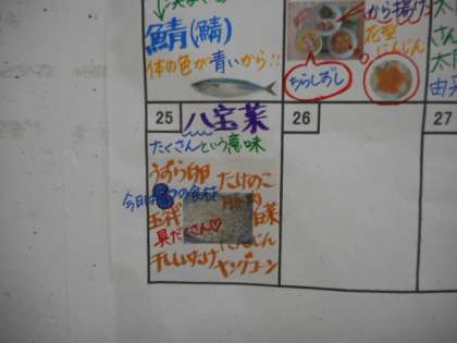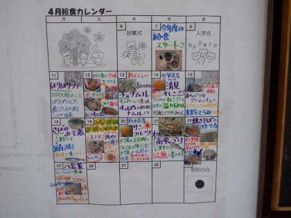芝園中学校の1階に「給食カレンダー」が掲示してあります。