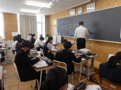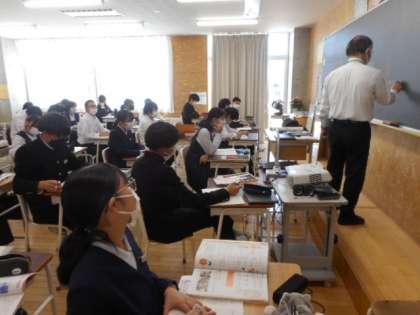 3−B理科 公開日 2022/04/25 更新日 2022/04/25 芝園の一日 4月25日(月) 3−Bの理科の授業風景です。化学の分野の学習をしました。どの生徒も真剣な眼差しで、話を聞き、理解を深めていました。