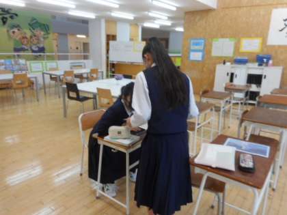 朝のSKIP学習の様子です。教室や多目的スペースを活用して自主学習に励んでいます。友達と教え合い学びを深めていました。