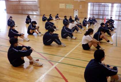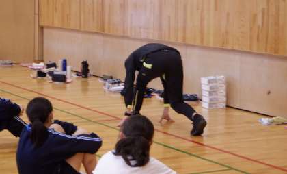 今日は「反復横跳び」を実施しました。次回は、50m走です。それに向けて、スタートの練習です!